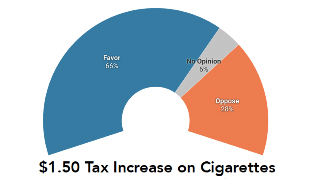 - Support for raising tobacco taxes was found across the political spectrum with 66% of Republicans voters, 77% of Democratic voters and 60% of Independents supporting the increase.