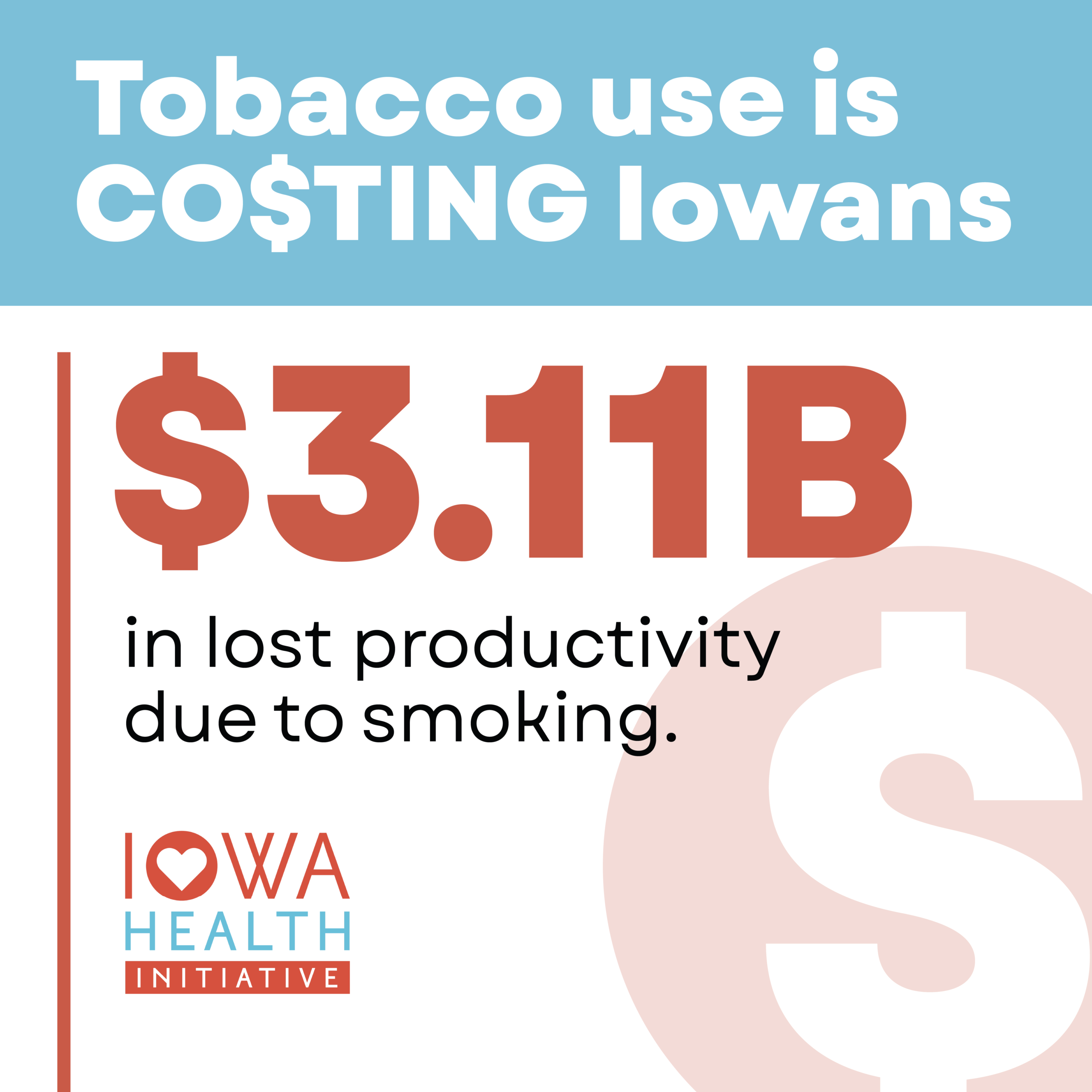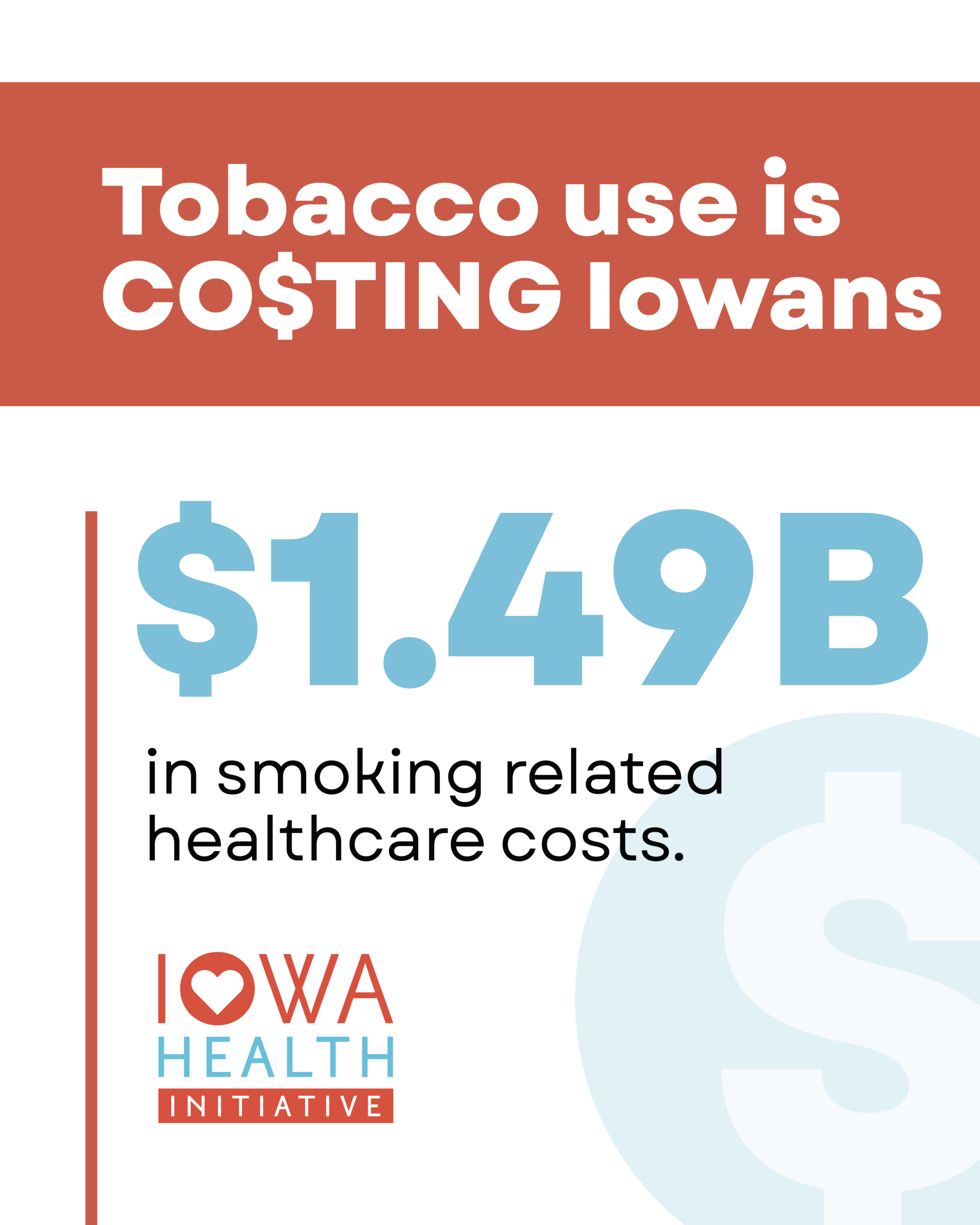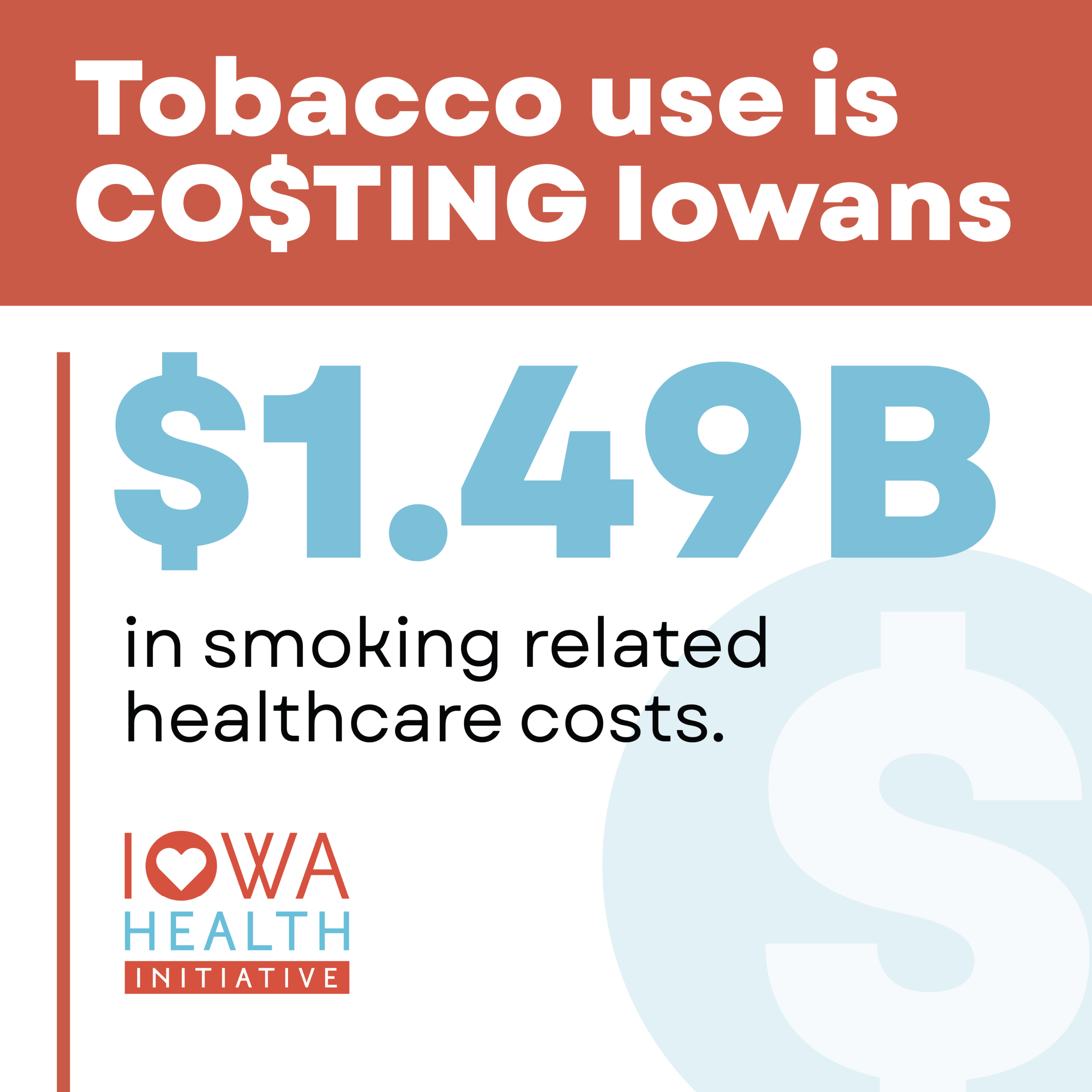And smoking alone costs Iowa taxpayers nearly 1.5 BILLION, not million; BILLION dollars each year in Medicaid and Medicare.