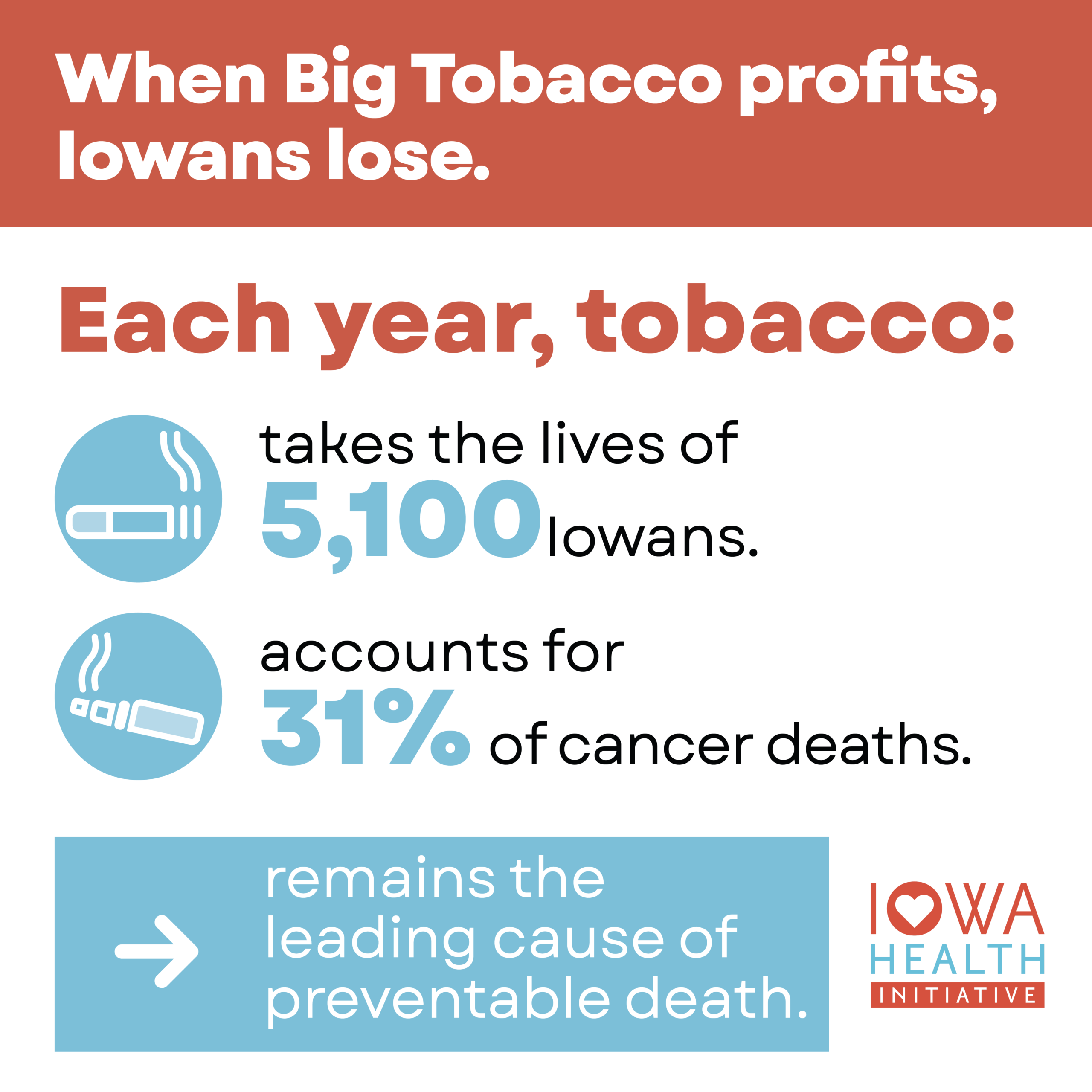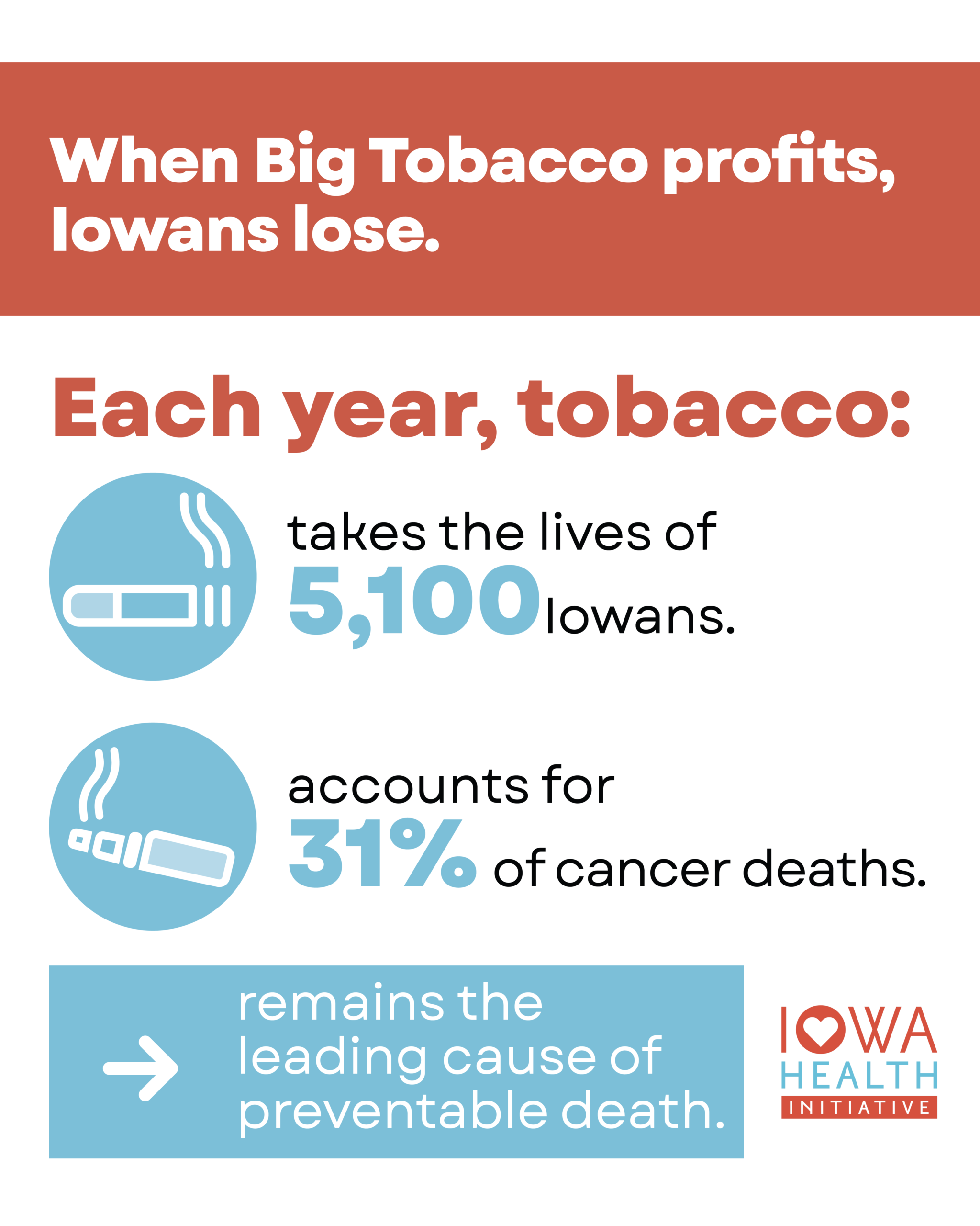 Tobacco use is the leading cause of preventable death in Iowa – and in our nation.